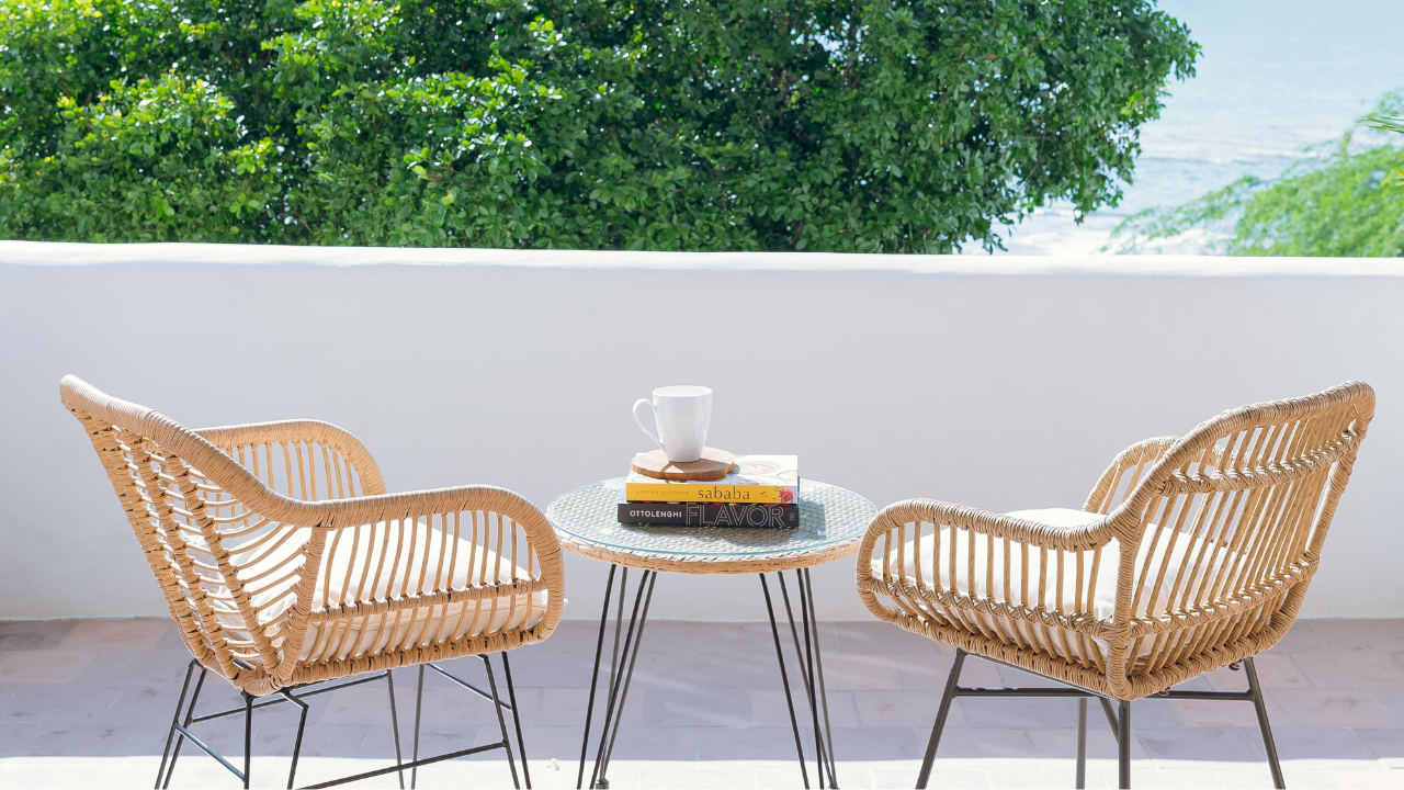 Ocean-facing patio shaded by the leaves of a sweet tree. Full-sized bed, AC, fan, flat screen tv and full ensuite bathroom.
